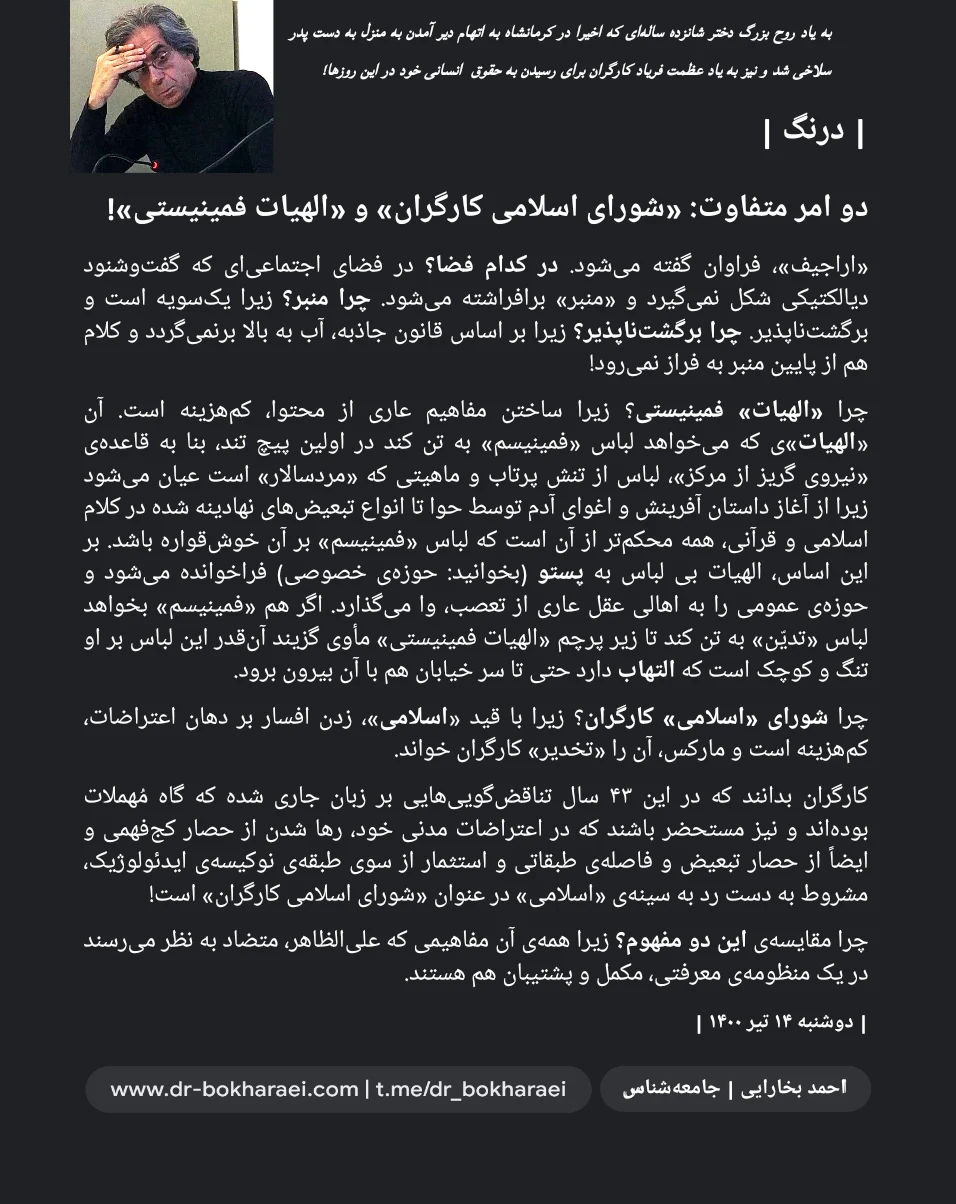 درنگ | دو امر متفاوت: «شورای اسلامی کارگران» و «الهیات فمینیستی»!